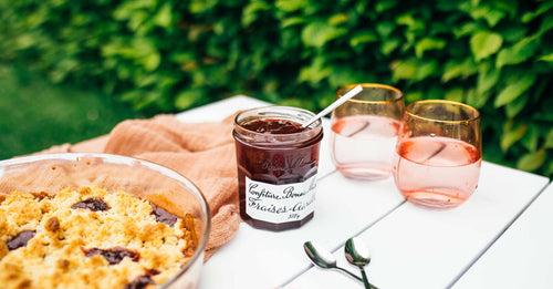 Déposez la rhubarbe dans un plat à gratin, ajoutez quelques cuillères à café de confiture de fraises et parsemez de crumble. Enfournez 30 min. Servez tiède.