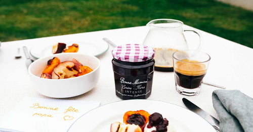Servez les fruits rôtis accompagnés d’une boule de glace vanille et de quelques cuillères de Confiture de Cerise Intense.