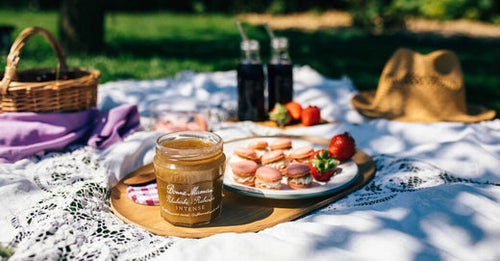 - Ajoutez une pointe de confiture de rhubarbe et refermez avec une autre coque de macaron.