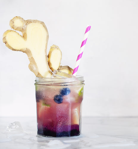 Mocktail au gingembre et à la myrtille avec la confiture de myrtilles Bonne Maman