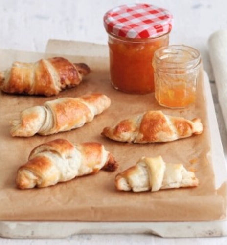 Gevulde croissants met aardbeien- en abrikozenconfituur van Bonne Maman