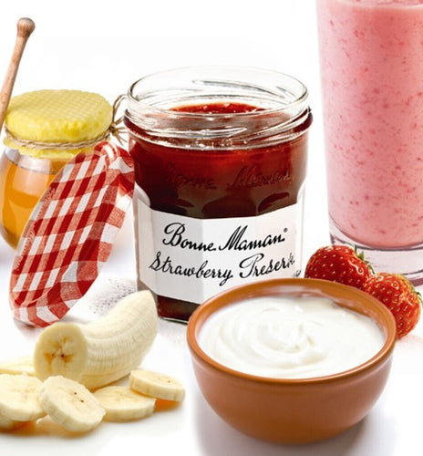 Meng het fruit met de magere yoghurt, de aardbeienconfituur en de honing en je krijgt een voedzame en heerlijk verfrissende fruitsmoothie.